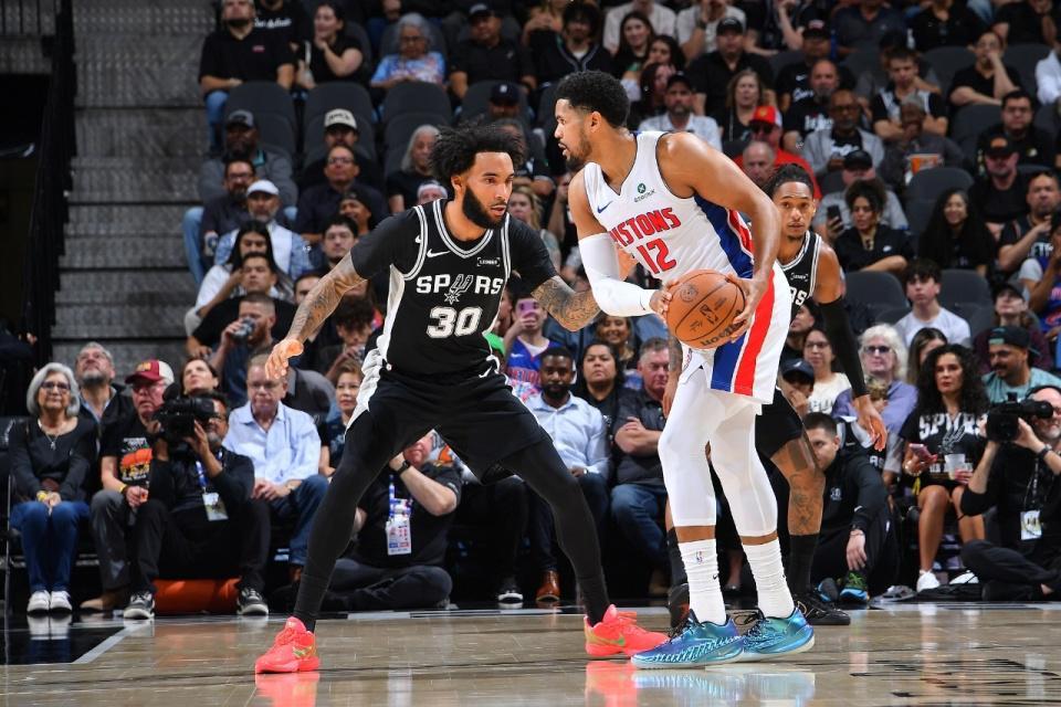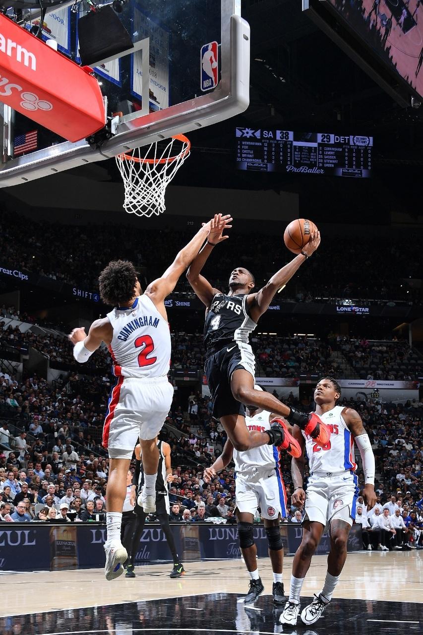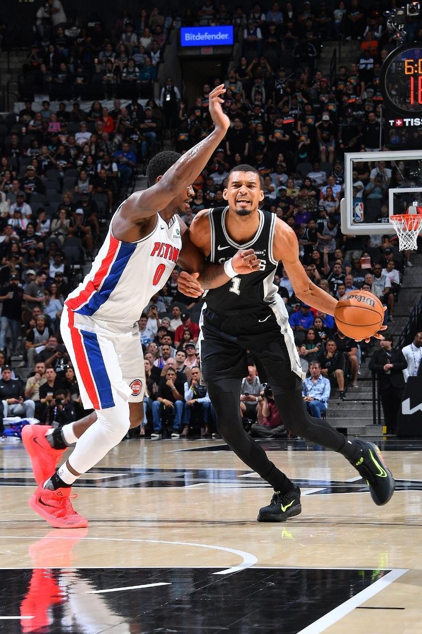 马刺上一场客场131-91大胜76人,活塞上一场客场109-113惜败骑士,本赛季首次交锋马刺客场114-103战胜活塞。本场马刺缺少巴恩斯、加西亚、普拉姆利,活塞缺少琼斯。首节开局马刺攻防压制10-2领先,活塞追到差4分,双方拉锯战缠斗。马刺在24-19后,双核率队打出14-2攻势扩大17分优势,斯图尔特两罚全中,首节结束马刺38-23领先活塞。首节马刺25中14,其中三分13中7,文班亚马6中4得到12+3+2帽与福克斯9中6命中3记三分得到16分;活塞被限制仅有29中7,其中三分8中1,坎宁安7中1仅得到2分2助攻与杜伦5中2仅得到4+4+2犯规。